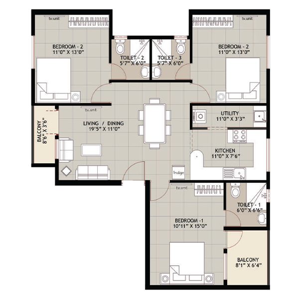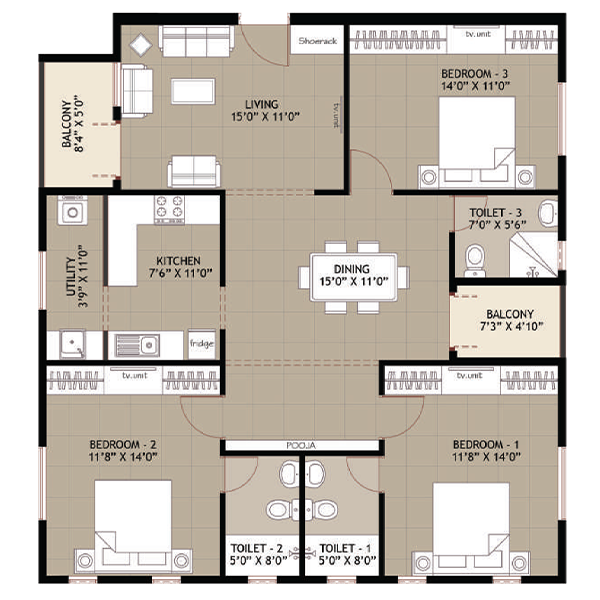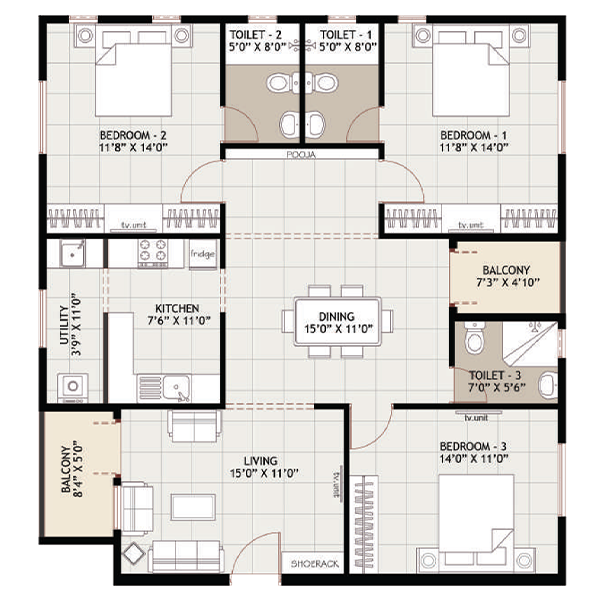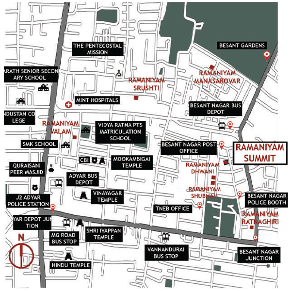 Located between two tree-lined streets in Besant Nagar, "This stunning residential project offers 5 double and 15 triple bedroom apartments across five floors" with top knotch design and reliable construction quality.